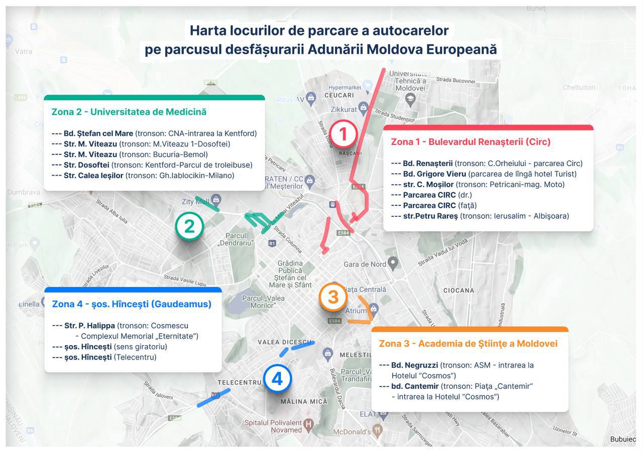 O întrebare frecventă a cetățenilor, potrivit lui, ține de locurile de parcare. Astfel, în municipiul Chișinău sunt patru zone mari de parcare în funcție de intrarea în oraș. Harta parcărilor poate fi accesată AICI.