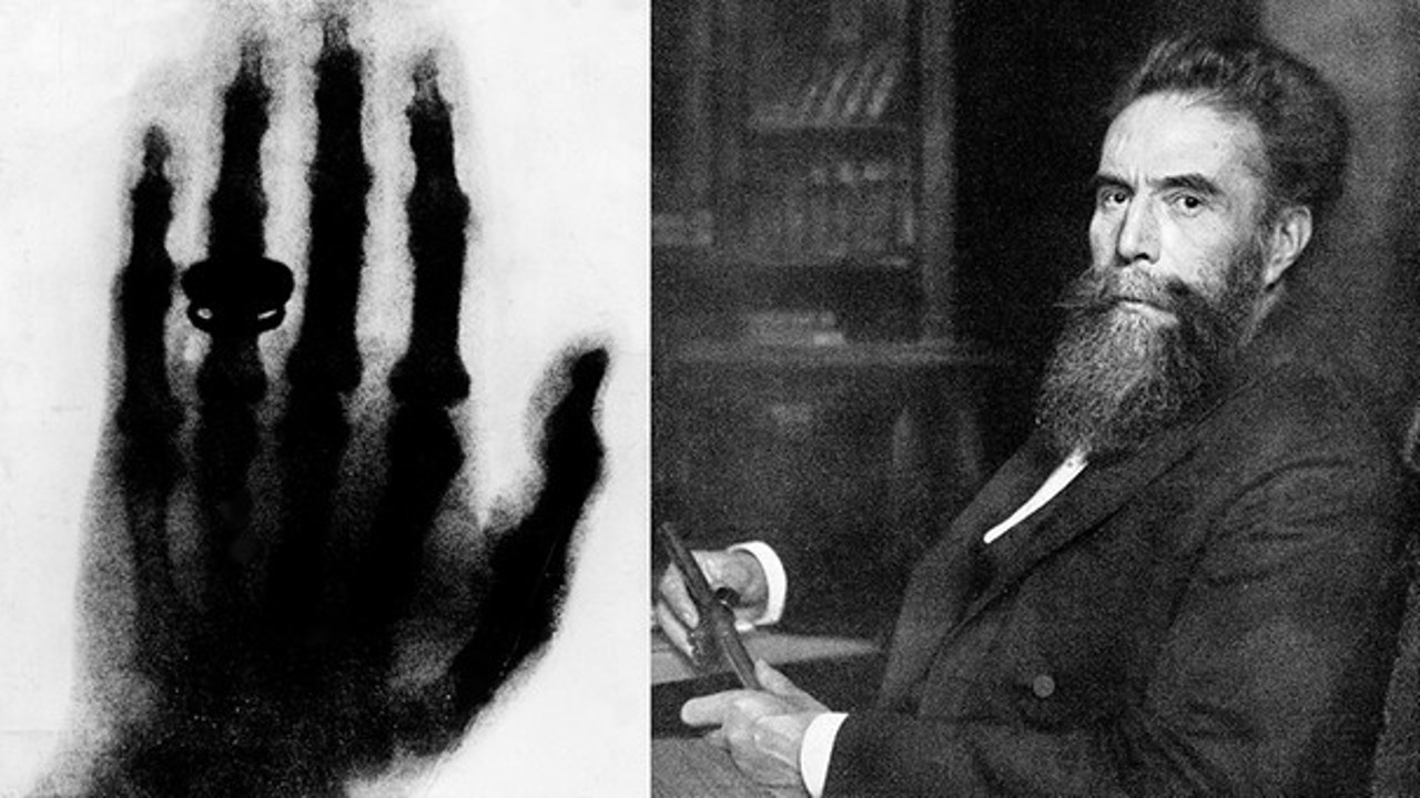 1895: Wilhelm Conrad Röntgen, a descoperit razele electromagnetice, cunoscute sub numele de razele X, sau razele Röntgen. Röntgen făcea experimente în laboratorul său pentru a vedea efectele descărcărilor sarcinilor electrice de mare intensitate prin tuburi de sticlă umplute cu gaz rarefiat la presiuni foarte joase. Prima radiografie adevărată din lume a făcut-o mâinii soției sale, în care se poate vedea inclusiv inelul pe care îl purta. Pentru că nu știa natura acestor raze, le-a spus ”raze X”. După această descoperire, Röntgen a primit recunoaștere internațională. În 1901 a primit cea mai înaltă distincție pentru munca sa științifică: Premiul Nobel pentru fizică. Wilhelm Conrad Röntgen a murit în 1923, din cauza unui cancer la intestine, care nu ar avea nicio legătură cu expunerea sa la radiații, pentru că el a fost printre primii savanți care au folosit ecrane de plumb pentru protecția împotriva acestor radiații. La 8 noiembrie în memoria descoperirii lui, este marcată Ziua Internațională a Radiologiei.