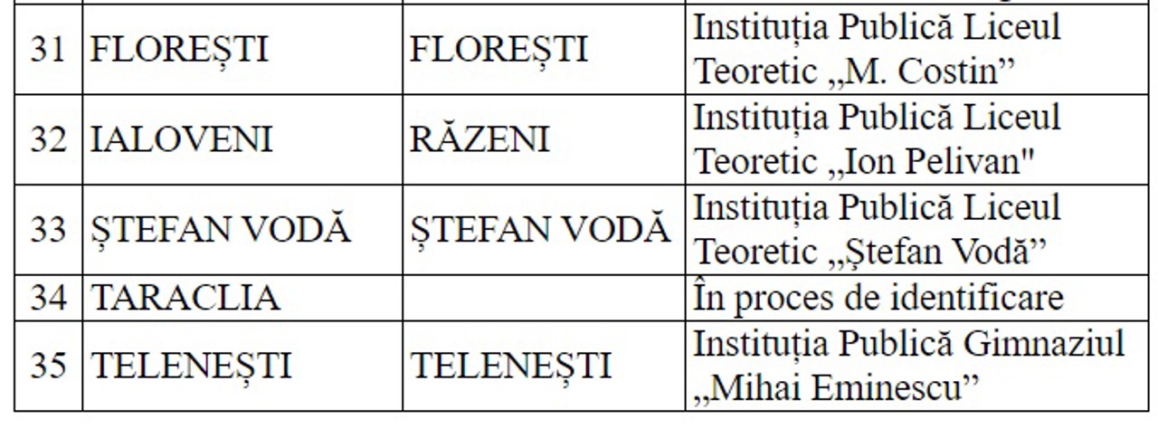 Rețeaua de Școli Model prevede renovarea și dotarea integrală a 35 de instituții de învățământ general din țară. Ministerul a făcut publică lista școlilor ce vor fi renovate.