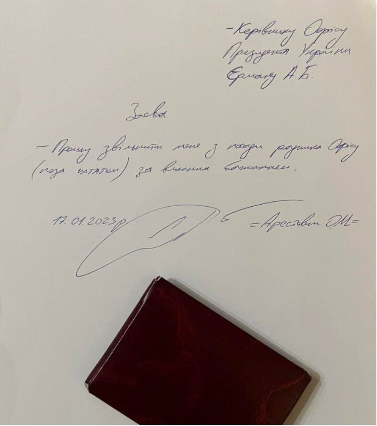 "I wrote a resignation letter. I want to proove a civilized departure behavior. A fundamental mistake means resignation," wrote Arestovici.