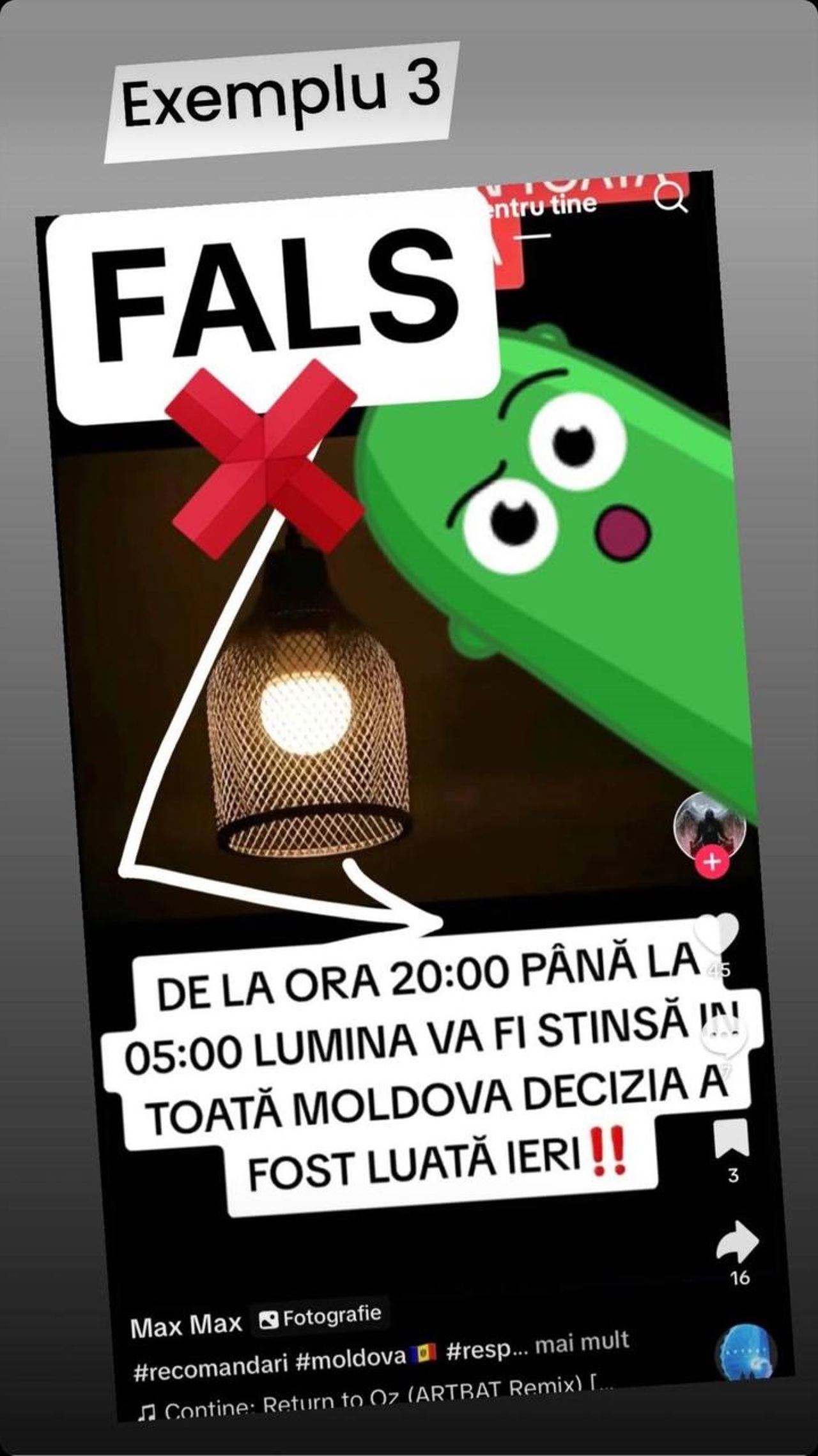 Pe TikTok circulă zeci de narațiuni alarmiste: gaz la 50 de lei/m3, deconectări de electricitate „chiar de mâine”. După unii, apocalipsa pare programată înainte de prânz! Ați întâlnit aceste minciuni zilele acestea? Atenție la dezinformare – nu credeți tot ce zboară, că nu-i tot păsărică!”, a precizat purtătorul de cuvânt al Executivului, Daniel Vodă.