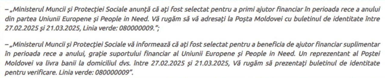 Госсекретарь Минтруда Василе Кушка в эфире передачи Dimineața cu Radio Moldova рассказал, что помощь получат около 4,7 тыс. молдавских семей и больше 2,5 тыс. семей беженцев из Украины. Суммы составят от 1 тыс. до 1,5 тыс. леев.
