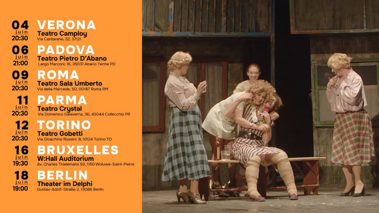 Turneul debutează pe 30 mai cu două spectacole la Festivalul Internațional de Teatru din Suceava, după care urmează un itinerar care include cinci orașe italiene și capitalele Belgiei și Germaniei.