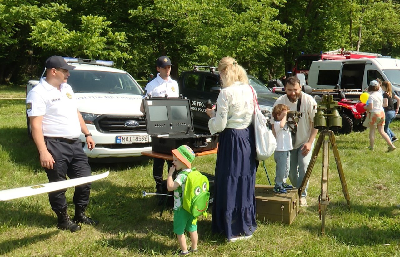 Copiii au stat la rând cu nerăbdare pentru a studia echipamentul expus de angajații Poliției de Frontieră. Printre atracțiile principale s-au numărat autospecialele moderne, binoclurile performante și dronele utilizate pentru supravegherea frontierei.