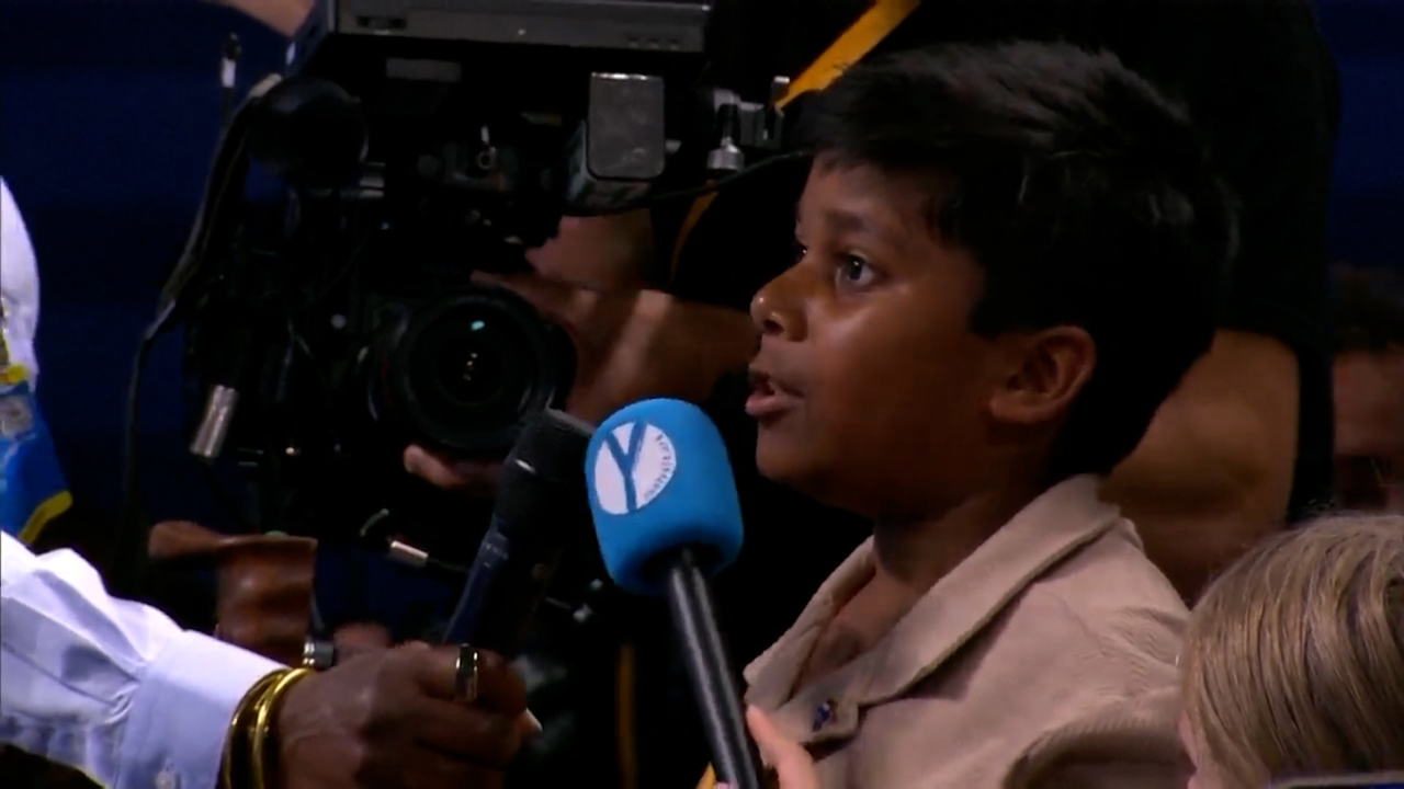 La finalul conferinței de presă susținute de secretarul general al NATO, Mark Rutte, la summitul liderilor alianței de la Haga, o voce de copil a captat atenția întregii săli de presă, unde erau prezenți jurnaliști din toată lumea. „Credeți că și noi, copiii, putem lupta pentru pace? Sau ar trebui să avem încredere că voi veți aduce pacea în lume?”, a întrebat copilul.