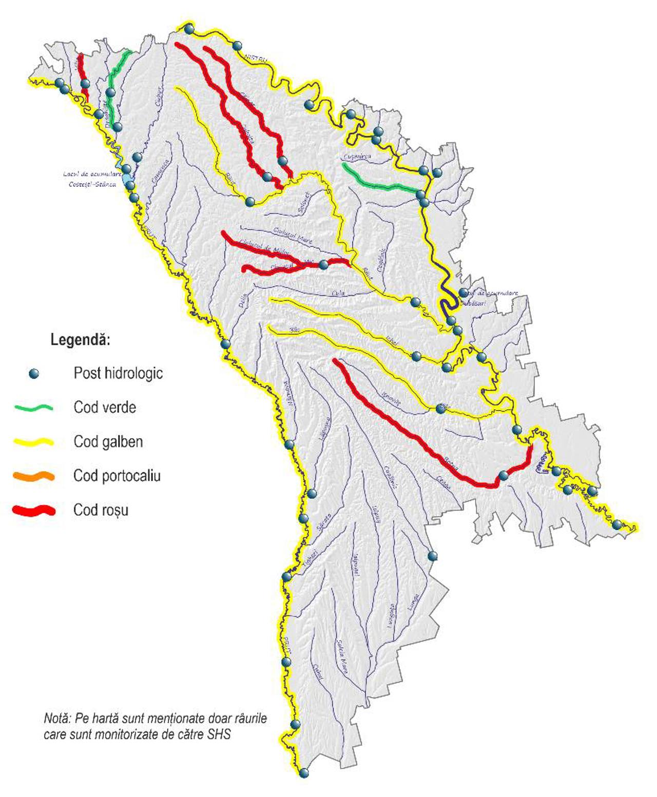 Государственная гидрометеослужба выпустила предупреждение из-за низкого уровня воды в водоемах. На крупнейших реках Молдовы — Днестр и Прут — объявлен так называемый "желтый код" опасности. Это значит, что сток составляет до 50% от средних многолетних значений. На некоторых внутренних реках сток еще меньше.