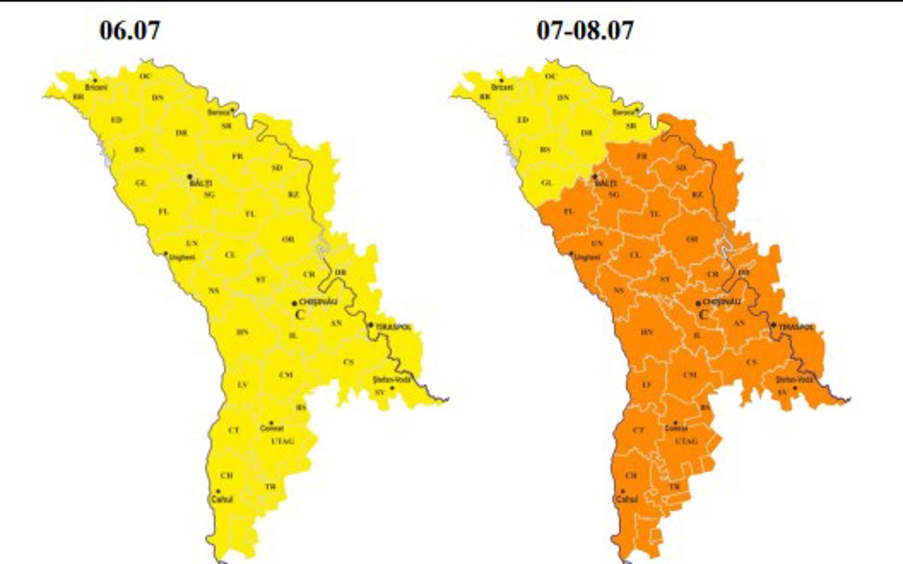 Totodată, în zilele de 7 și 8 iulie, în centrul și sudul republicii, termometrele vor înregistra temperaturi între 36 și 38 de grade.