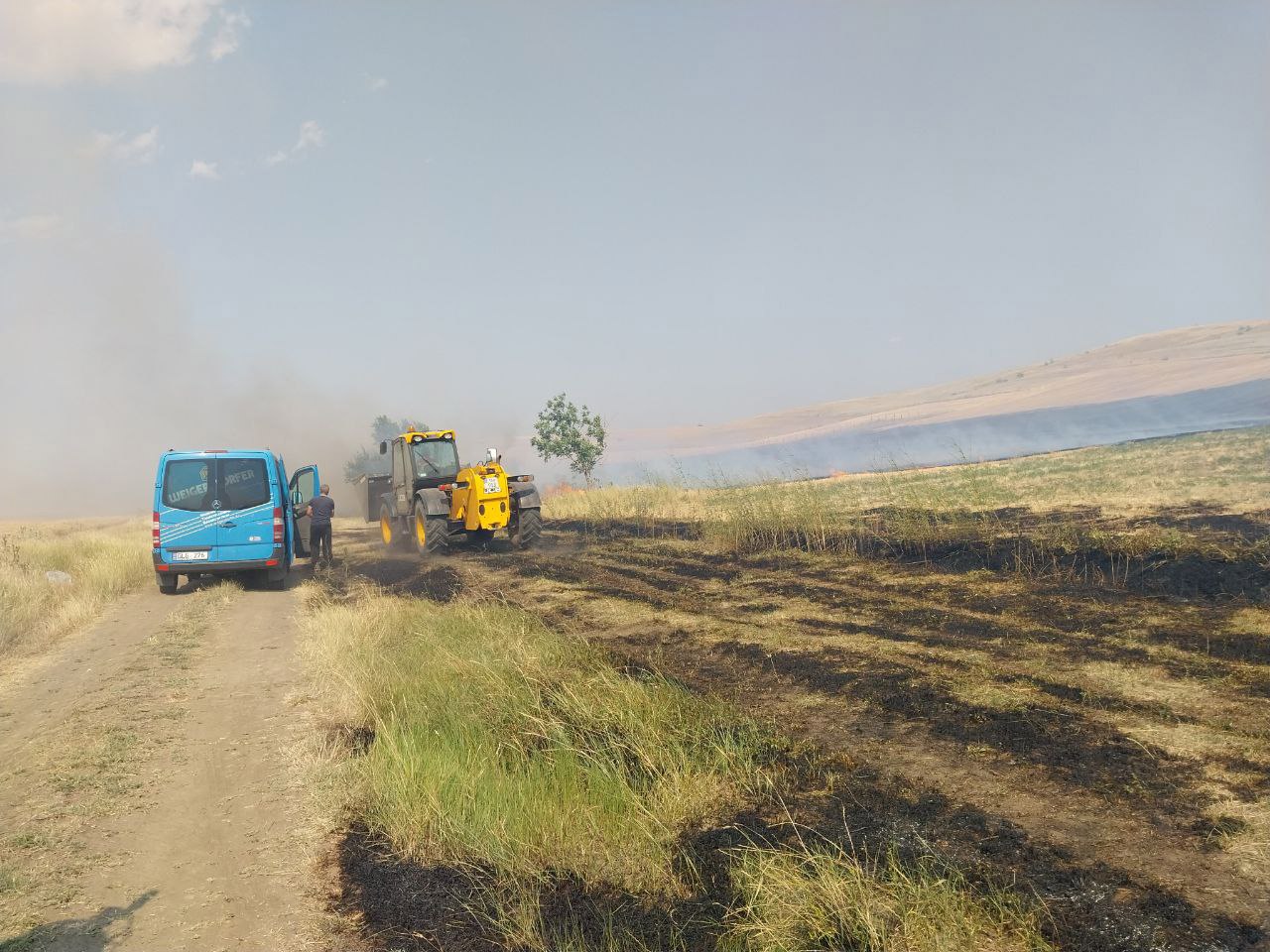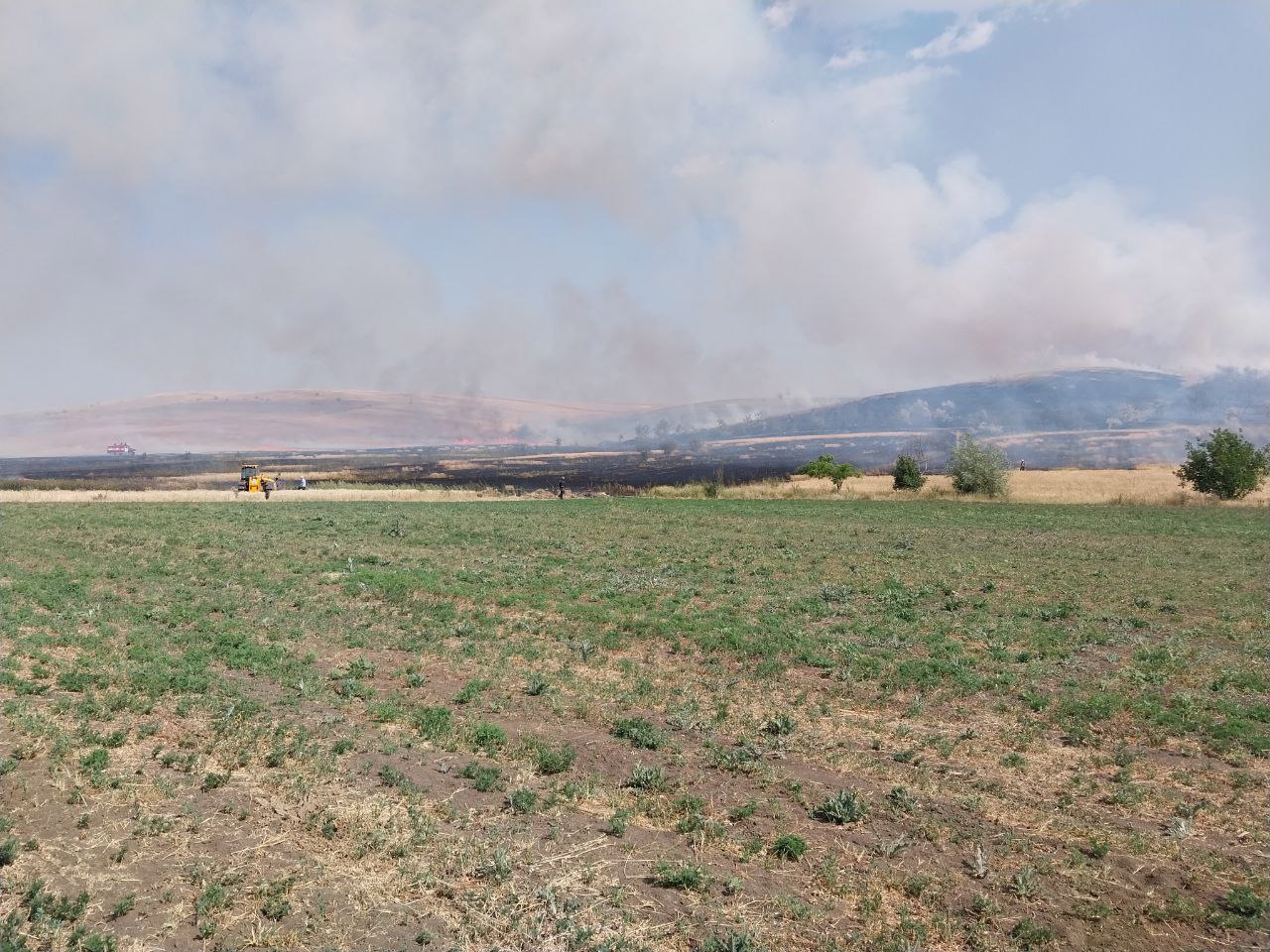 Ajunși la destinație, pompierii au stabilit că arde un teren cu miriște și vegetație uscată, iar focul risca să se extindă spre un lan de floarea-soarelui.