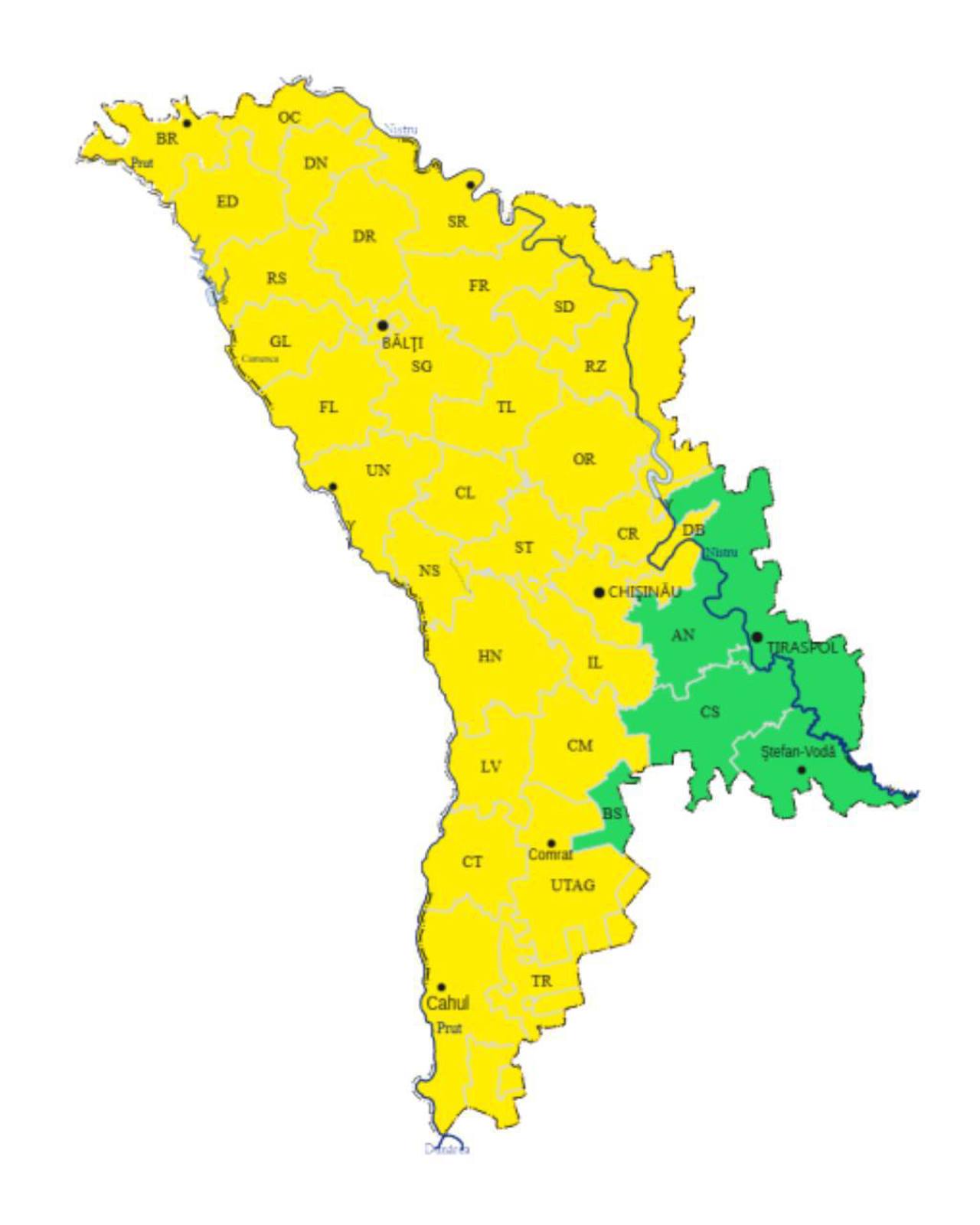 Желтый код затронет практически все регионы Республики Молдова, за исключением районов Анений Ной, Кэушень и Штефан Водэ.