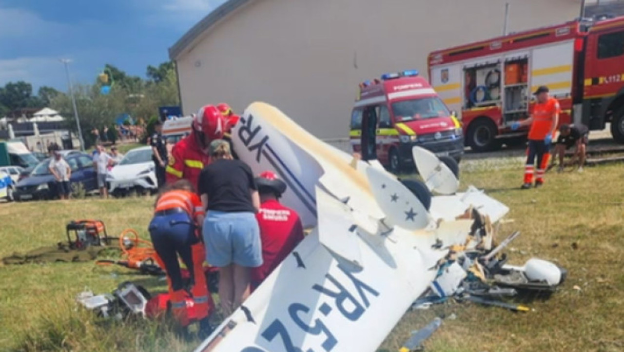 Potrivit presei române, avionul de mici dimensiuni s-a lovit de cablurile tirolienei de la Arsenal Park din Orăștie, prăbușindu-se apoi în parcarea aquapark-ului.
