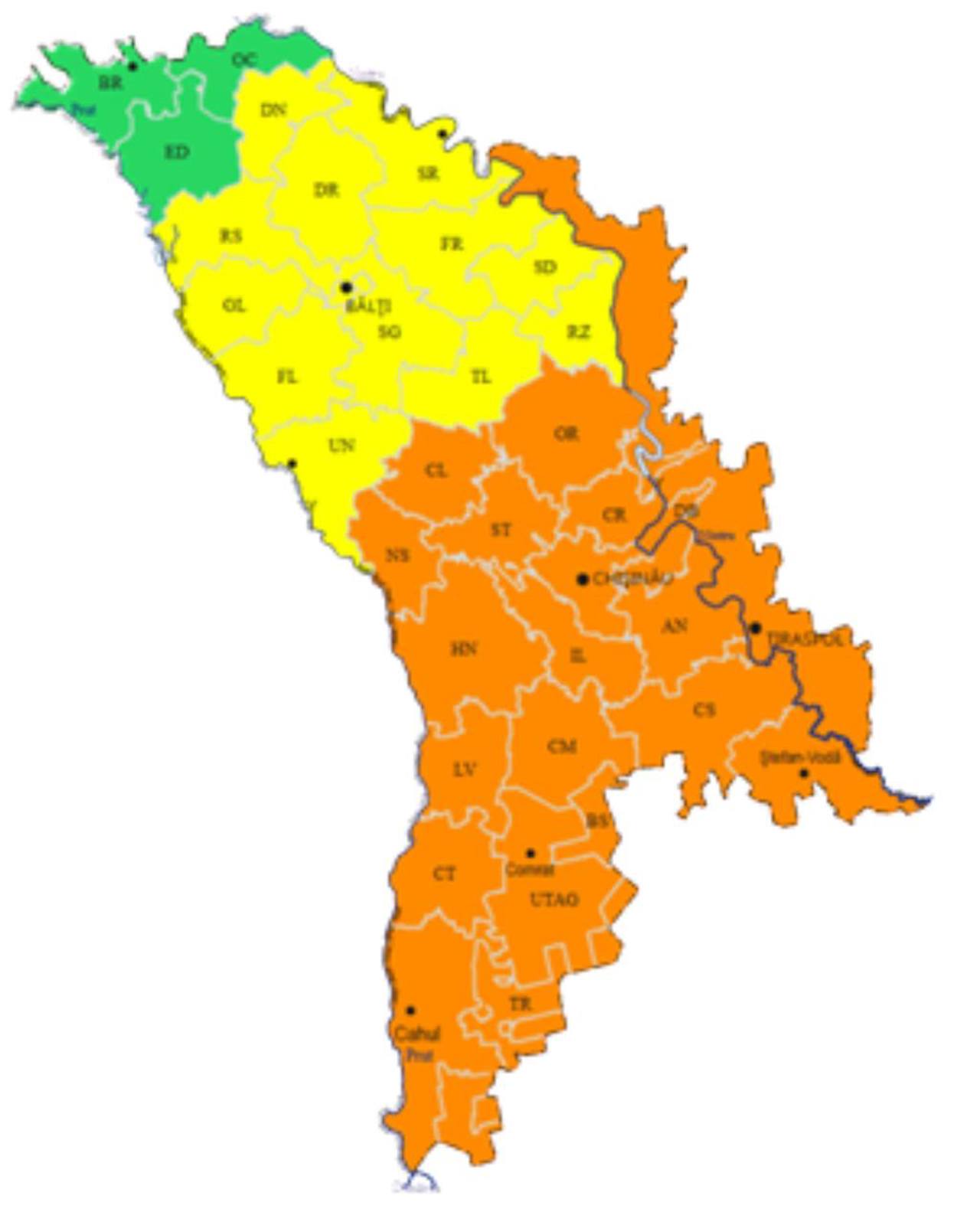 În același interval, doar zona de nord-vest a Republicii Moldova nu va fi afectată de caniculă.