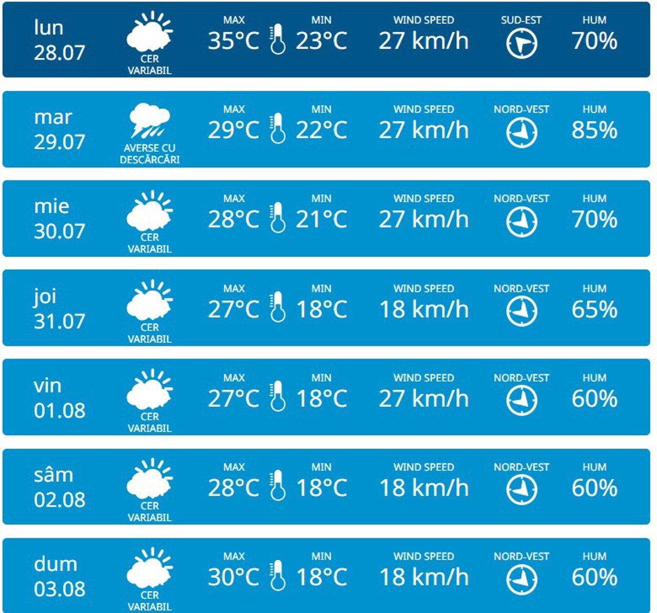 Amintim că pe 28 iulie, în centrul R. Moldova este valabil un Cod galben de caniculă, iar în partea de sud a țării - Cod portocaliu. Temperaturile oscilează între 35 și 39 de grade.