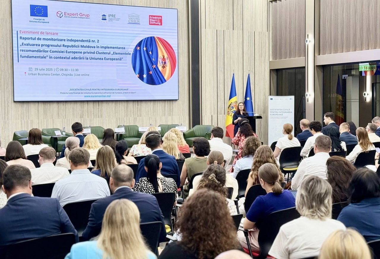 Republica Moldova a înregistrat progrese moderate în implementarea recomandărilor Comisiei Europene din clusterul „Elementele fundamentale”, esențial pentru deschiderea negocierilor de aderare la Uniunea Europeană. Concluzia reiese din cel de-al doilea raport de monitorizare independentă, realizat de un consorțiu de organizații ale societății civile și prezentat marți, 29 iulie. Analiza, care acoperă perioada iulie 2024 – iulie 2025, evidențiază că scorul mediu de implementare a recomandărilor Comisiei este de 3,2 puncte din 5, ceea ce reflectă o etapă de „implementare inițiată cu progres sesizabil”.