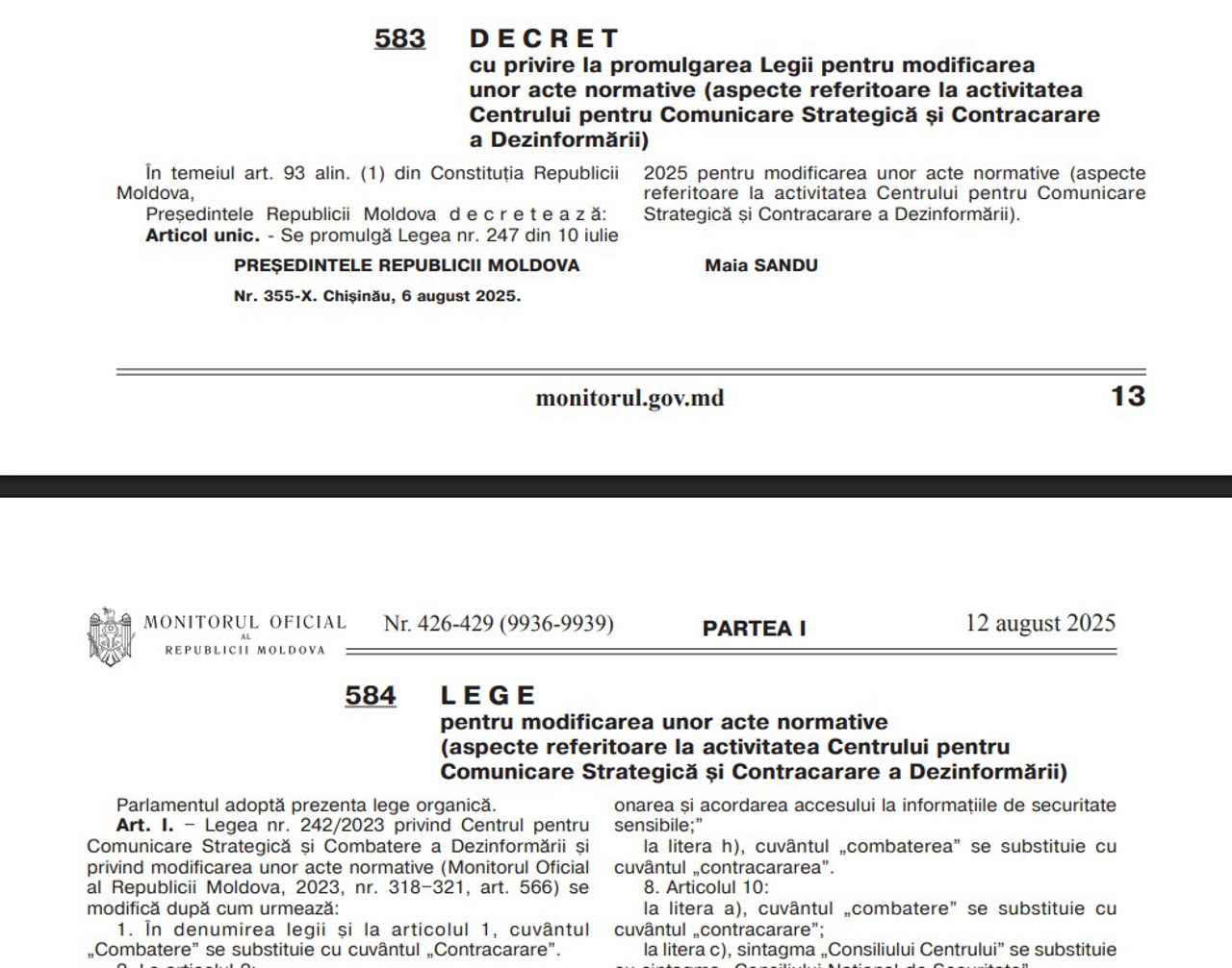 The presidential decree to promulgate the changes approved by Parliament was published today in the Official Gazette of the Republic of Moldova.