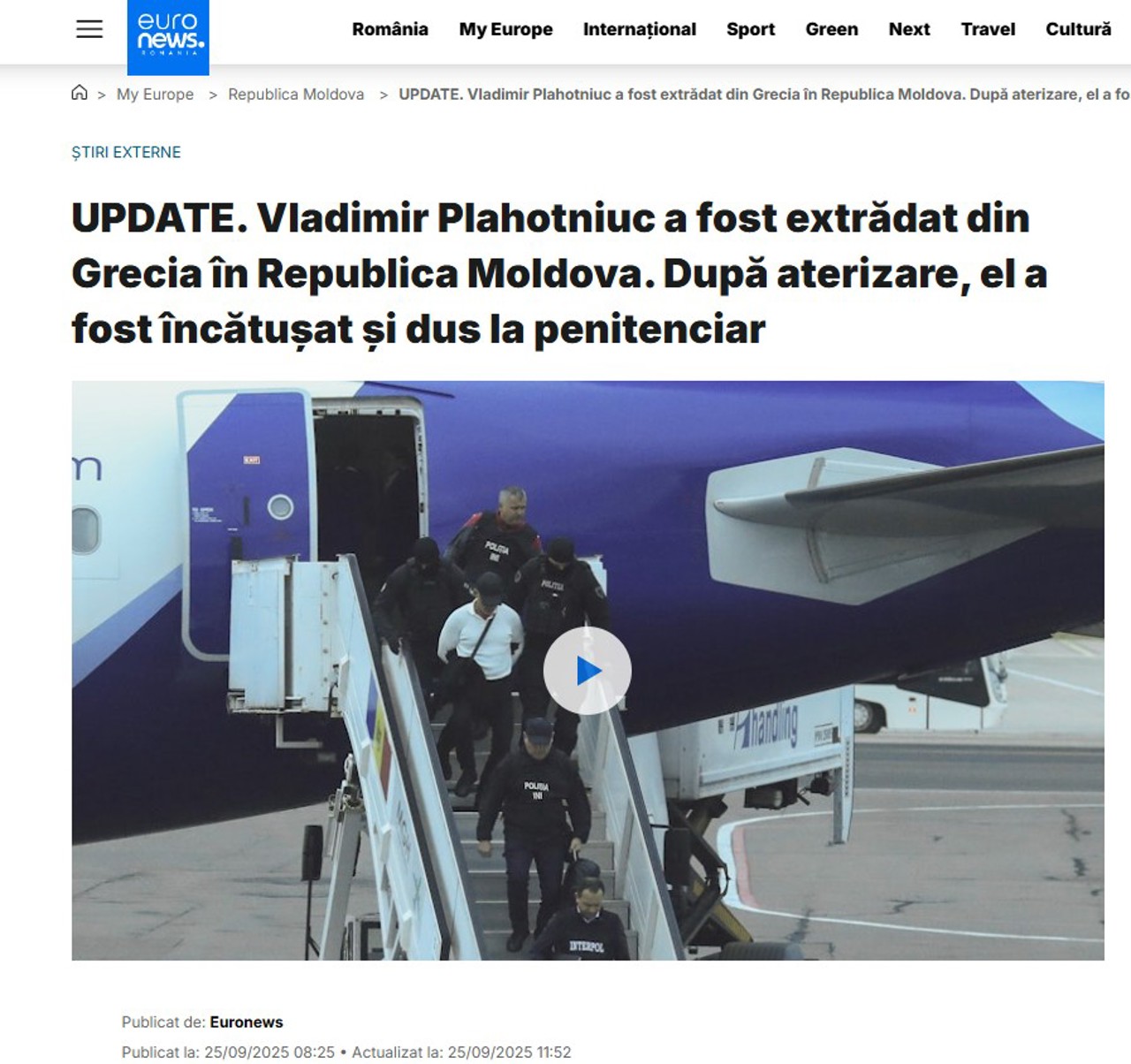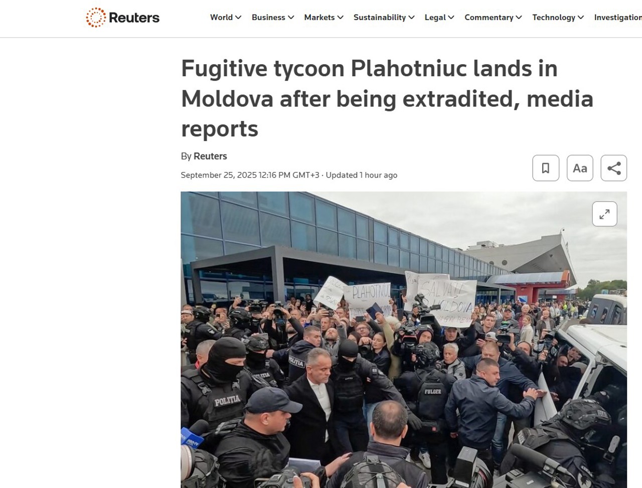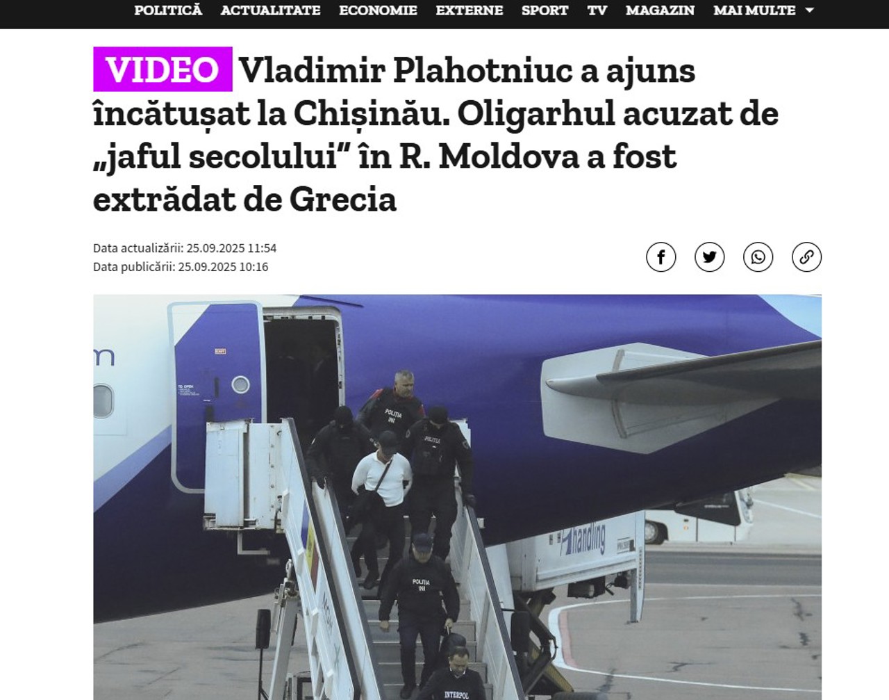 Extrădarea în Republica Moldova a fostului lider al Partidului Democrat, Vladimir Plahotniuc, are ecouri și în presa internațională. Media străină relatează despre revenirea, pe 25 septembrie, în țară a lui Plahotniuc, care este prezentat ca fiind unul dintre cei mai bogați oameni din R. Moldova și unul dintre principalii suspecți în așa-numitul „furt al secolului”.