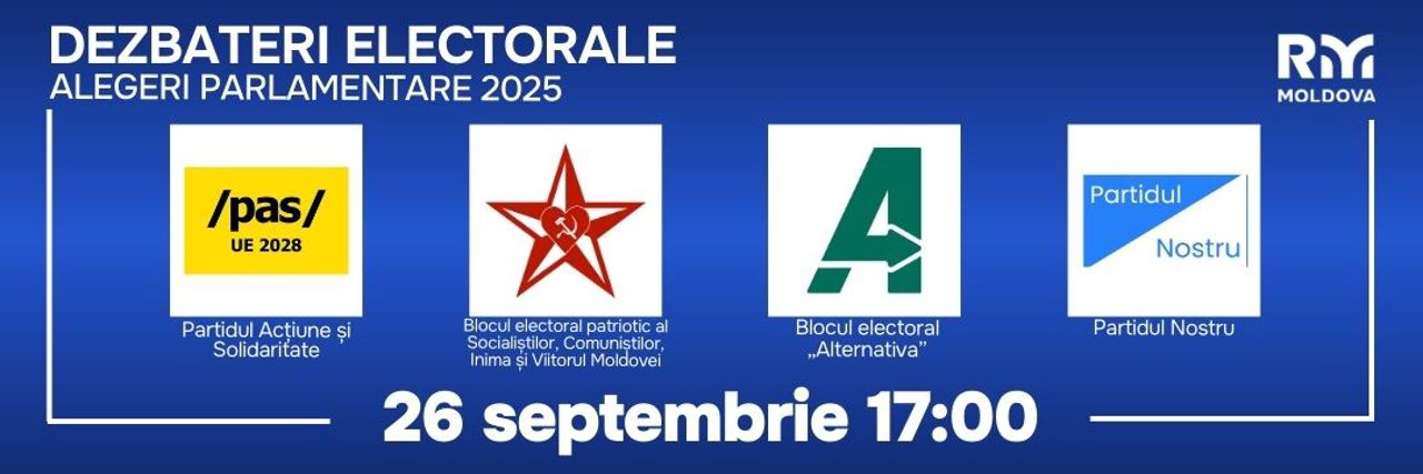 Radio Moldova a organizat vineri, 26 septembrie, ultima rundă de dezbateri electorale. De această dată, în platou au fost prezenți reprezentanții Partidului Acțiune și Solidaritate (PAS), ai Blocul electoral Patriotic al Socialiștilor, Comuniștilor, Inima și Viitorul Moldovei (BEP), ai Blocului Electoral „Alternativa” și ai Partidului Nostru (PN).