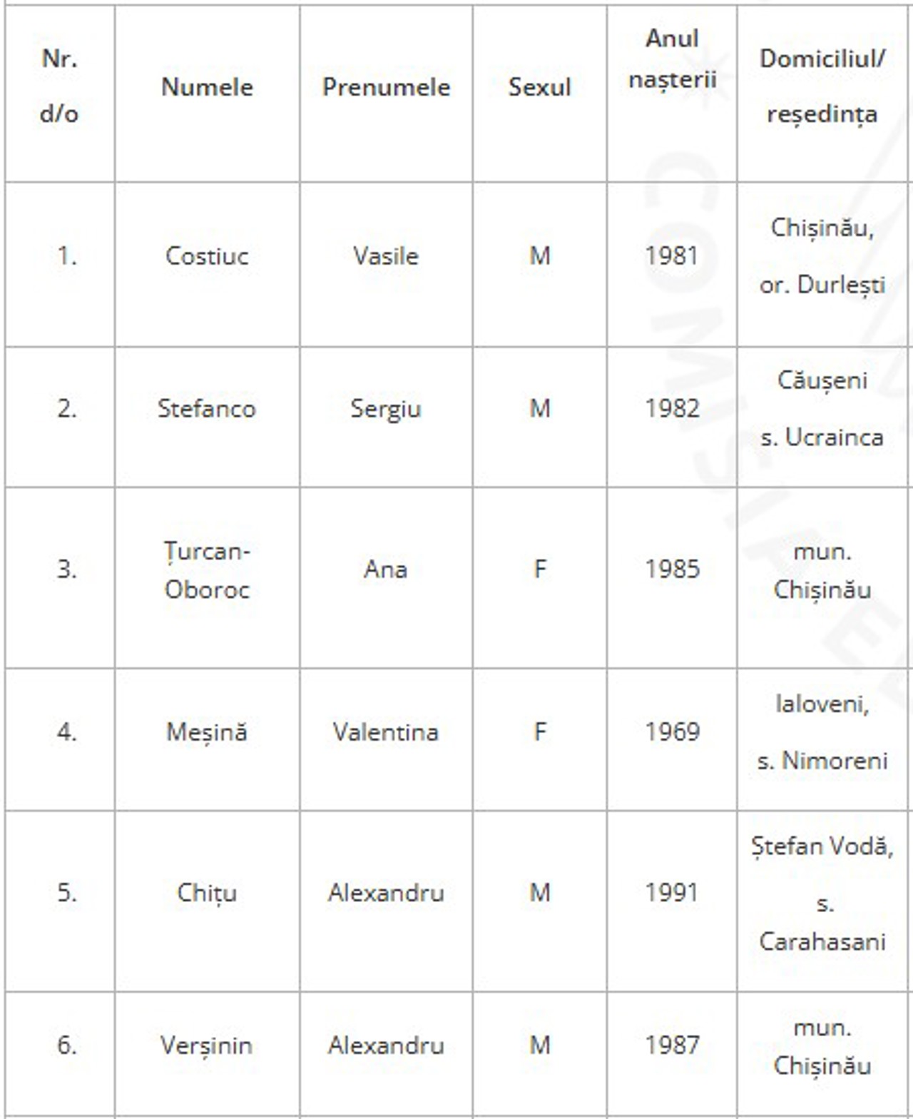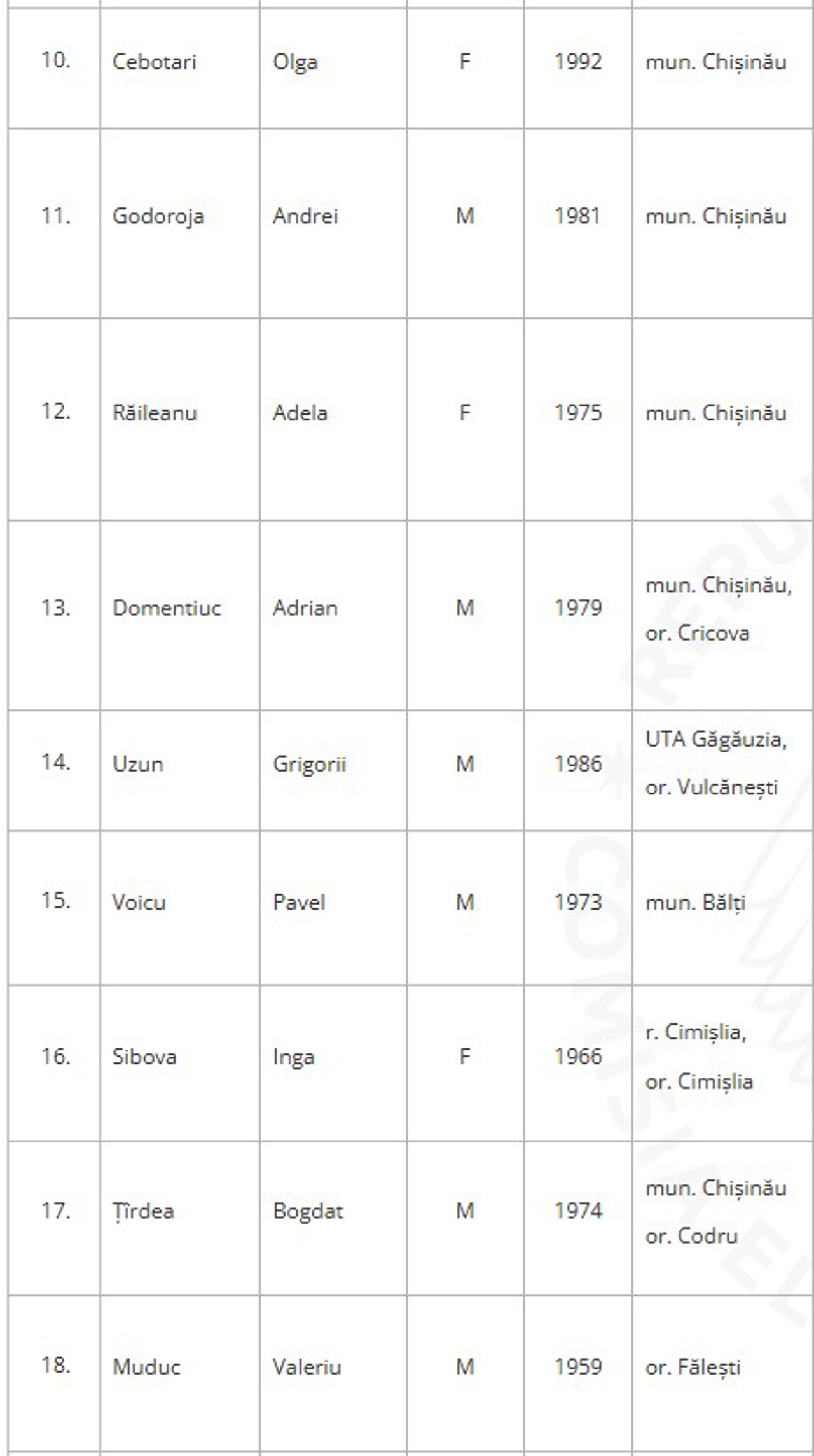 Lista potențialilor deputați ai Partidului „Democrația Acasă”: