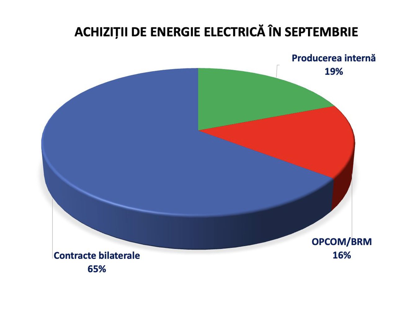 Restul de 16,2% din energie a fost achiziționat prin intermediul platformelor internaționale de tranzacționare BRM și OPCOM.