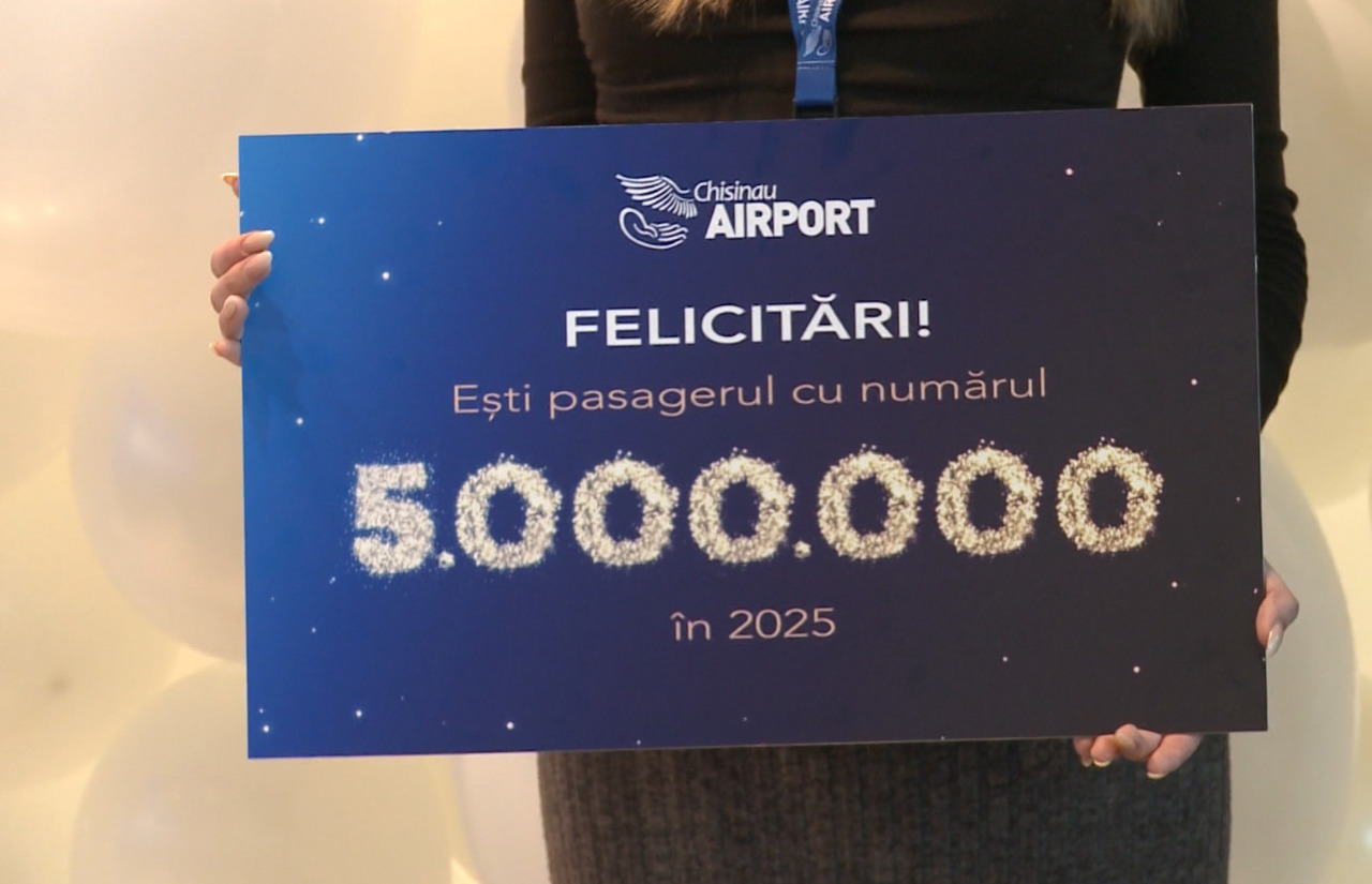 Cinci milioane de pasageri au trecut prin Aeroportul Internațional „Eugen Doga”, de la începutul anului. Recordul a fost sărbătorit odată cu aterizarea Monicăi Răcilă, care a fost pasagera cu numărul cinci milioane. Stabilită în Franța de două decenii, aceasta a revenit vineri acasă și a fost întâmpinată cu muzică și cadouri. Administrația aerogării spune că această creștere a numărului de călători scoate în evidență necesitatea unor lucrări de extindere a aeroportului.