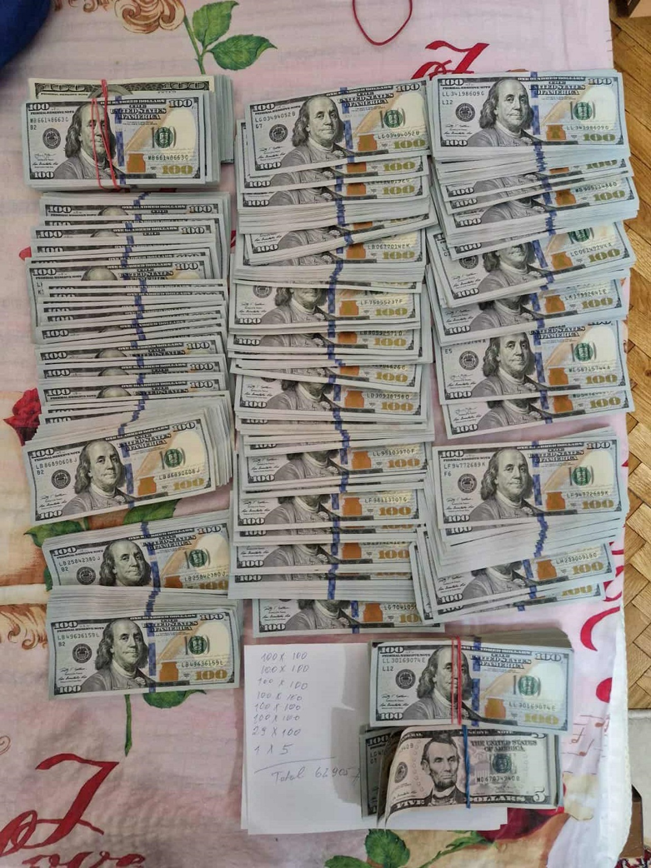 Imaginile CNA care arată sumele de bani descoperite în urma perchezițiilor la fața locului: