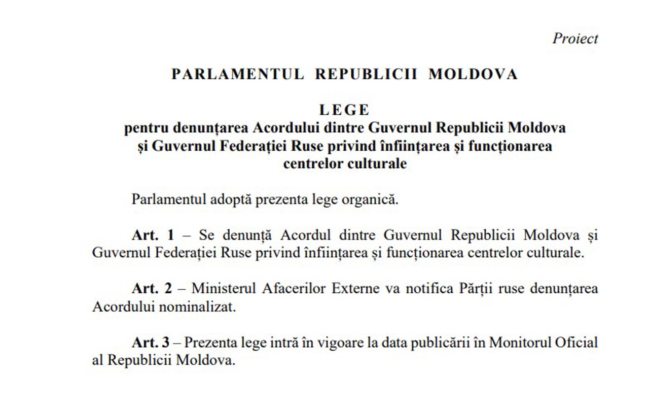 „Având în vedere că Republica Moldova nu beneficiază de un centru cultural pe teritoriul Federației Ruse, nu există un mecanism echitabil pentru promovarea informațiilor despre Republica Moldova, ceea ce subminează echilibrul și scopul inițial al Acordului”, se arată în nota de argumentare a proiectului, semnată de ministrul Culturii, Cristian Jardan.