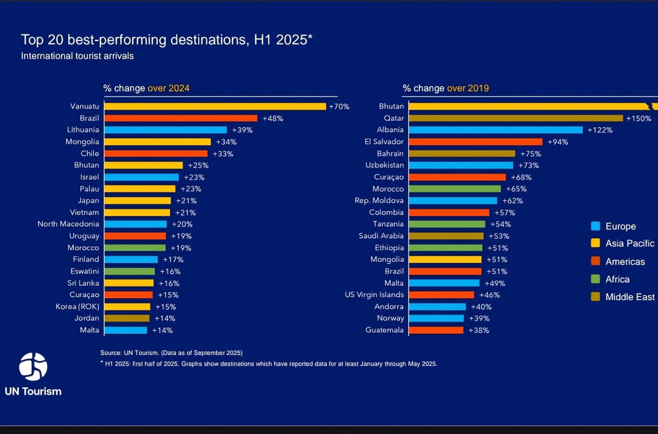 The Republic of Moldova has become one of the most dynamic tourist destinations in Europe, according to data from the World Tourism Organization (UN Tourism). In the first half of 2025, our country ranked among the Top 10 European destinations for performance, with international tourist arrivals increasing by 62% compared to 2019.