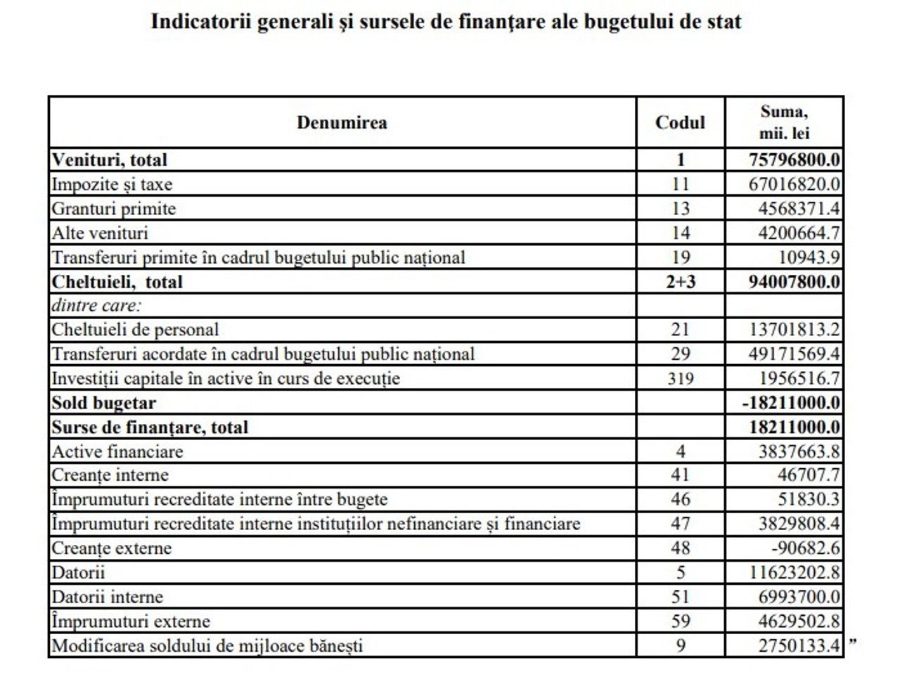 Cheltuielile bugetului de stat pentru anul 2025 vor crește cu 169 de milioane de lei, până la 94 de miliarde de lei. Totodată, veniturile se vor micșora cu aproape 136 de milioane și vor constitui 75.7 miliarde de lei. Astfel că deficitul, și el în creștere, va depăși 18.2 miliarde de lei.