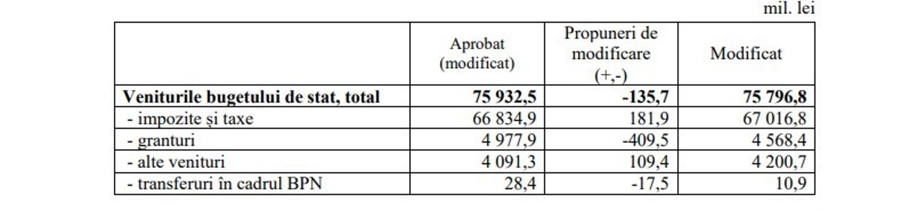 Potrivit proiectului aprobat, încasările din impozite și taxe vor crește cu 181.9 milioane de lei sau cu 0.3% și vor constitui 67 de miliarde de lei.