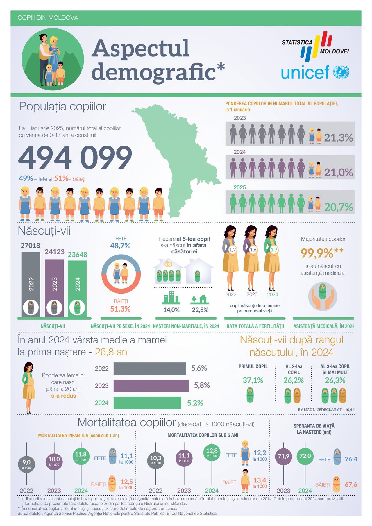 „În acest context, structura familială devine mai fragilă, iar probabilitatea ca un copil să crească într-o gospodărie monoparentală sau într-o familie afectată de migrație este mai mare decât în decadele precedente”, a conchis demograful Valeriu Sainsus.