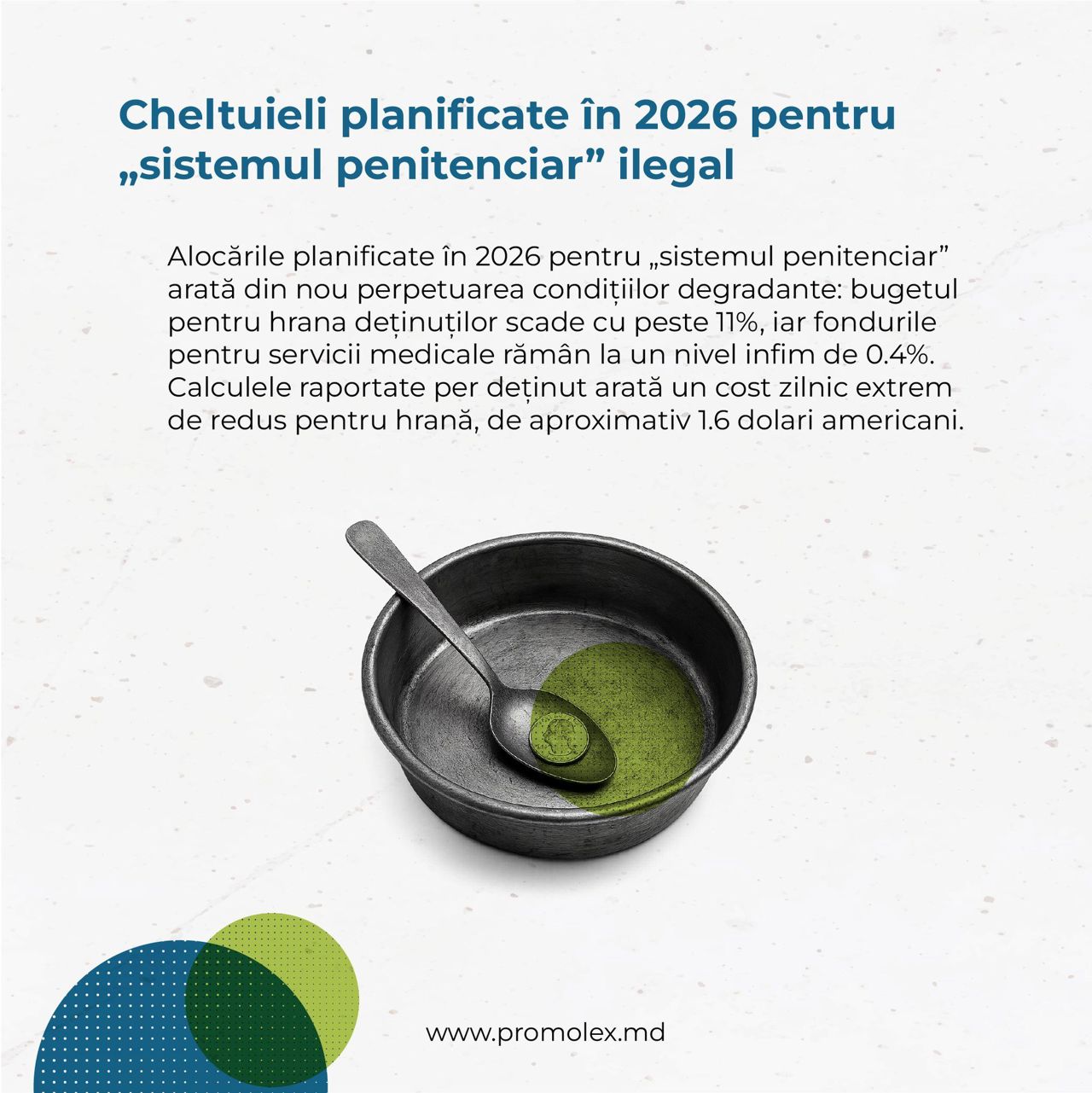 Promo-LEX menționează că valoarea reală a hranei este infimă – aproximativ 1.6 dolari pe zi pentru un deținut.