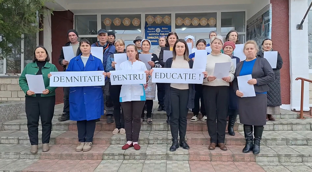 Учителя из села Пашкань Хынчештского района потребовали справедливых условий труда и зарплат, стоя на пороге своей гимназии. В руках они держали белые листы, как символ профессионального достоинства.