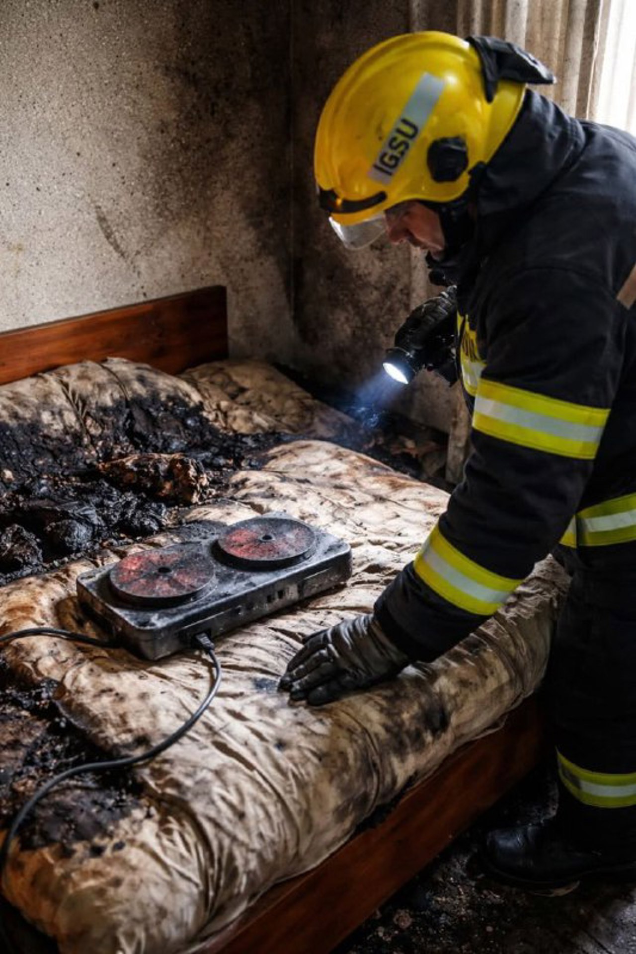 În urma arderii, au fost deteriorate salteaua, lenjeria și mai multe haine aflate pe pat.