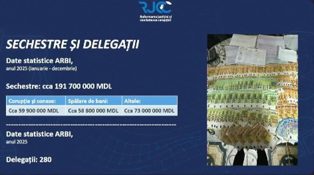 Agenția de Recuperare a Bunurilor Infracționale (ARBI) a executat, în perioada ianuarie – decembrie curent, 280 de solicitări ale procurorilor și organelor de urmărire penală și a aplicat sechestre pe bunuri în valoare totală de 191.7 milioane de lei. Aproape două treimi din sechestre au vizat cauze de corupție și de spălare de bani.