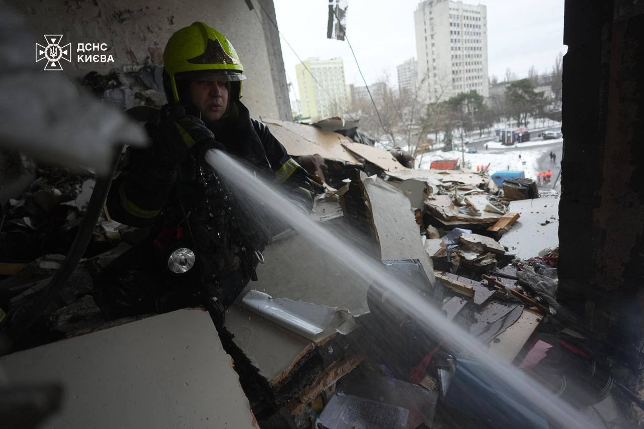 Echipele de intervenție acționează pentru stingerea incendiilor și degajarea dărâmăturilor. În raionul Darnița, poliția și Serviciul de Stat pentru Situații de Urgență au evacuat 68 de persoane dintr-un cămin, pentru a le pune la adăpost.