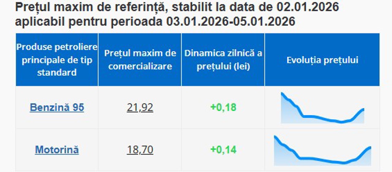 Pentru benzină, cel mai mic preț afișat a fost de aproape 22 de lei. Prețuri de sub pragul de 22 lei pentru un litru nu au mai fost înregistrate din ianuarie 2022, adică de aproape patru ani.