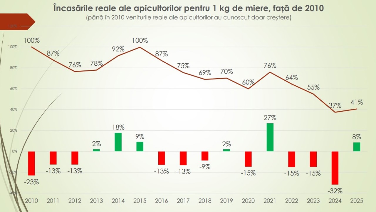 Situația s-a reflectat direct în veniturile obținute de apicultori. Încasările au fost influențate atât de fluctuațiile prețurilor și ale cheltuielilor, cât și de consumul de pe piața internă, aflat în descreștere.