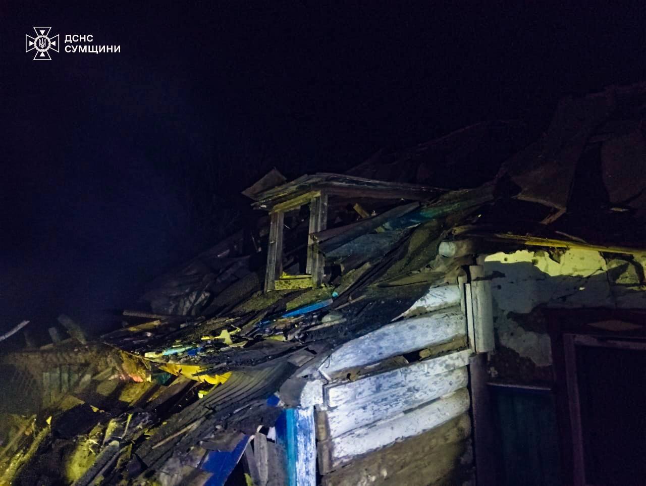 Mai multe drone rusești au lovit zona rezidențială din localitatea Putîvl, regiunea Sumî, unde o locuință a fost grav avariată; în aceasta locuia o familie cu patru copii. În apropierea casei, un autoturism a luat foc. Salvatorii au reușit să stingă toate focarele de incendiu.