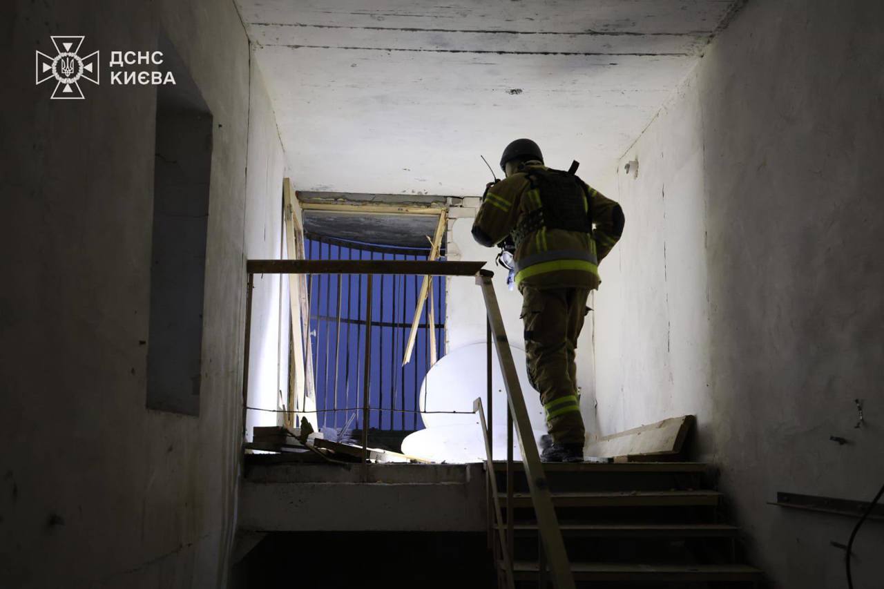 La Kiev, fragmente de dronă rusă au lovit un bloc de 15 etaje în raionul Solomianka.