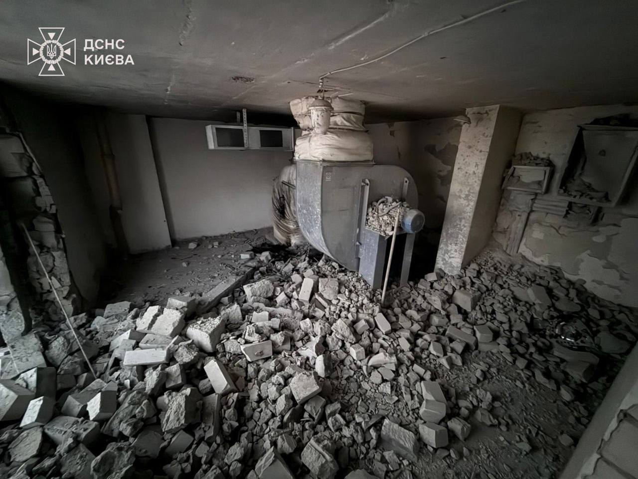 Impactul a avut loc la nivelul etajului tehnic, provocând distrugerea unui perete pe o suprafață de aproximativ patru metri pătrați, fără izbucnirea unui incendiu ulterior.