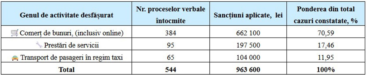 The fines for these illegal entrepreneurs ranged from 1,500 to 4,500 lei.