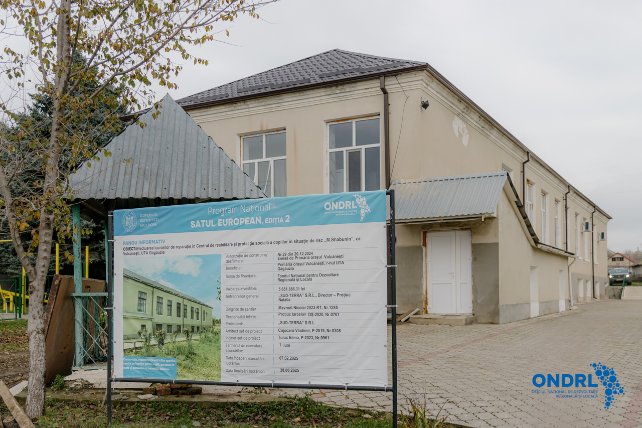 Unul dintre proiectele aflate în etapa finală de implementare este modernizarea Centrului de reabilitare și protecție socială a copiilor în situații de risc „Mihail Șabunin”, realizată în cadrul Programului național „Satul European”, ediția a II-a. Lucrările au inclus reparația fațadei clădirii, renovarea încăperilor de la subsol și de la etajul I, înlocuirea sistemelor de canalizare, electricitate și ventilație, schimbarea ferestrelor și a ușilor, instalarea unui nou sistem de încălzire și a unei alarme antiincendiu, precum și dotarea centrului cu mobilier și echipamente pentru bucătărie și sala de sport. Totodată, a fost construită o rampă de acces pentru persoanele cu mobilitate redusă.
