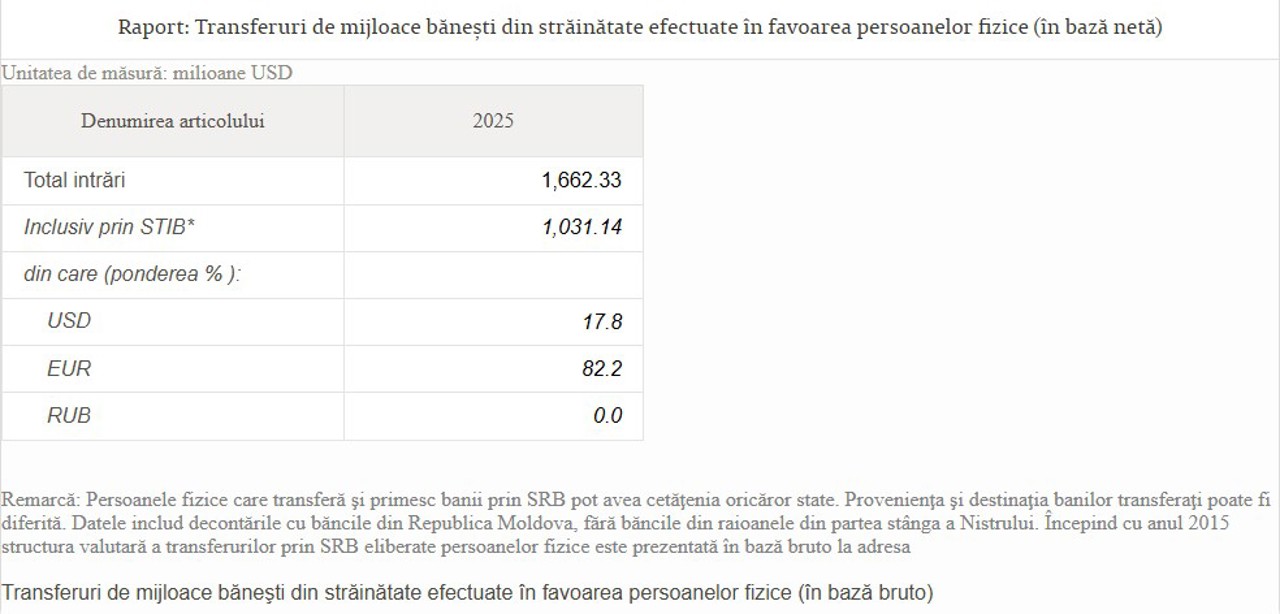 Din suma totală transferată în 2025, peste 1.03 miliarde de dolari au fost expediate prin intermediul sistemelor de transfer internațional de bani.