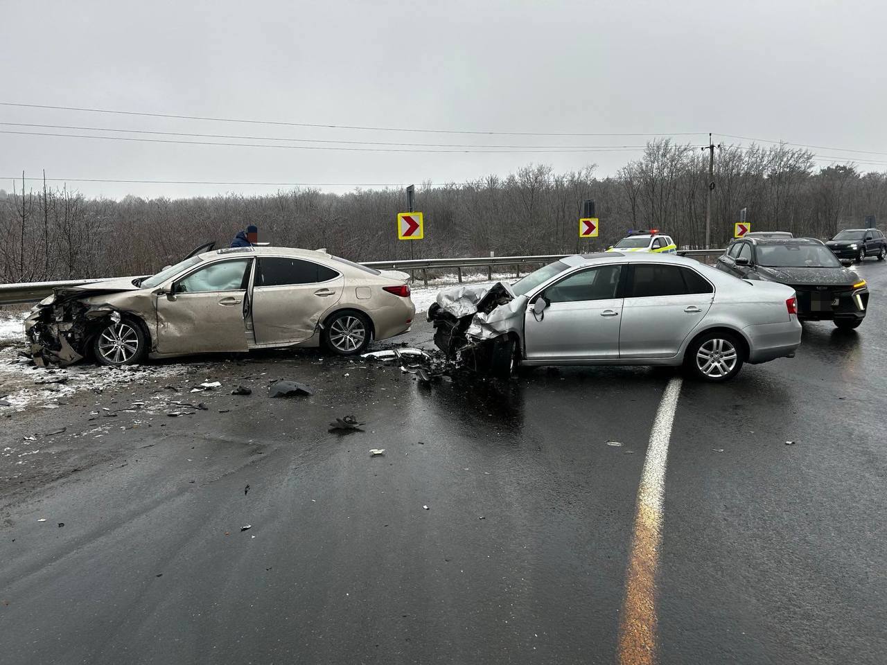 Iar în raionul Orhei au fost înregistrate cinci accidente rutiere. Inspectoratul General al Poliției a informat că patru accidente au fost cauzate de carosabil alunecos și unul din cauza echipării necorespunzătoare a mașinii pentru sezonul rece. Din imagini se vede că automobilele au fost avariate.