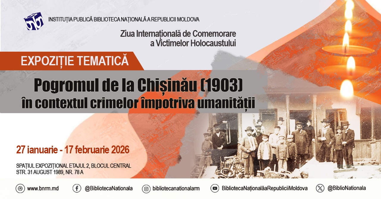 Anual, pe 27 ianuarie, este marcată Ziua internațională de comemorare a victimelor Holocaustului. În memoria victimelor, Biblioteca Națională va găzdui expoziția tematică cu genericul „Pogromul de la Chișinău (1903) în contextul crimelor împotriva umanității”, precum și o lansare de carte.