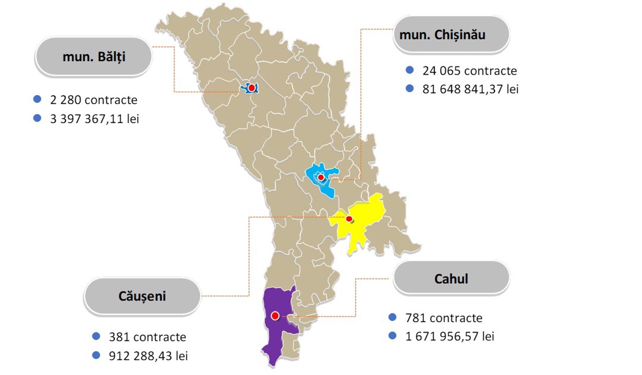 Datele arată și o creștere semnificativă a numărului de contracte înregistrate oficial. În anul 2025, au fost înregistrate 33.696 de contracte de dare în locațiune a bunurilor imobile, cu 29.2% mai mult decât în anul precedent.