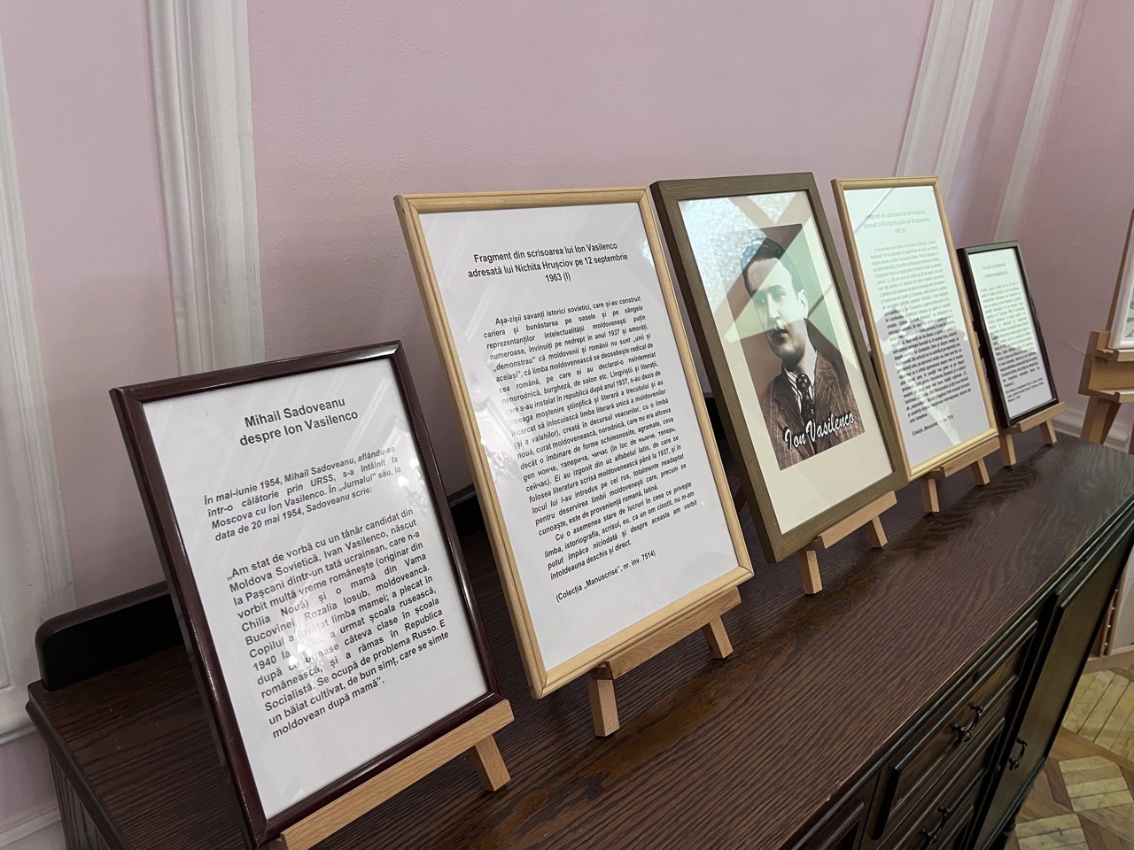 Ion Vasilenco pune, pentru prima dată, problema necesității revenirii la alfabetul latin și la ortografia de până la 1945. L-au refuzat toate publicațiile și, totuși, a reușit să publice acest articol în 1957 în revista „Nistru”. Un alt act de curaj a fost publicarea textului „Constantin Stere” în săptămânalul „Cultura Moldovei”. Atunci a început marea prigoană, care a culminat cu internarea forțată în spitalul de psihiatrie”, a relevat Veronica Boldișor, responsabilă de expoziție.