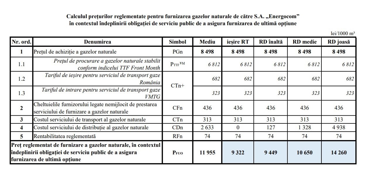 „Având în vedere că Energocom este un furnizor nou – nu a avut anterior obligații de serviciu public sau, mai simplu spus, nu a fost reglementat pentru furnizarea gazelor naturale – pentru acesta se aprobă toți indicatorii și toate costurile de la zero”, a explicat anterior directorul general al ANRE, Alexei Taran.