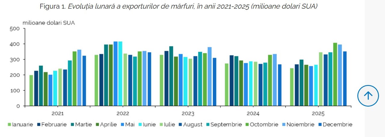 Ponderea exporturilor către Uniunea Europeană a crescut ușor, cu 0.2 puncte procentuale, până la 67.5% din total, însumând 2.5 miliarde de dolari. Totodată, exporturile destinate țărilor din Comunitatea Statelor Independente au totalizat 224.2 milioane dolari SUA, echivalentul unei cote de 5.9% din total exporturi, în scădere cu 0.9 puncte procentuale comparativ cu anul 2024.