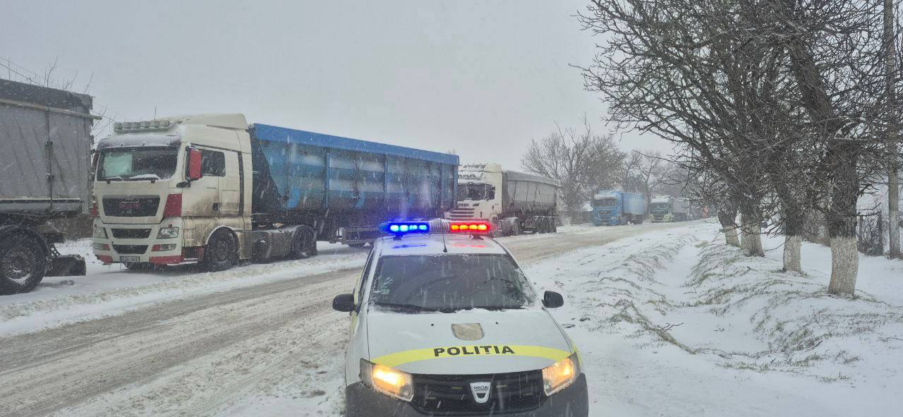 Potrivit autorităților, circulația camioanelor este sistată pe traseele Cahul-Giurgiulești, Balabanu-Giurgiulești și Hâncești-Sărata Galbenă, din cauza ninsorilor abundente și a formării poleiului.