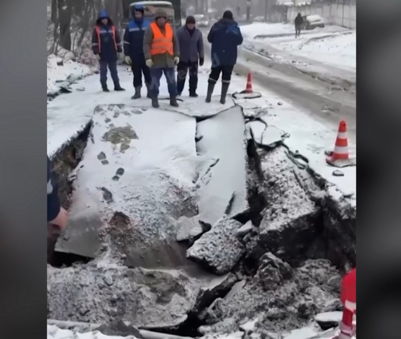 To facilitate safe operations, water services were temporarily suspended for several surrounding streets. Utility officials confirmed that the freezing temperatures weakened the asphalt layers, leading to the sudden collapse of the road surface.